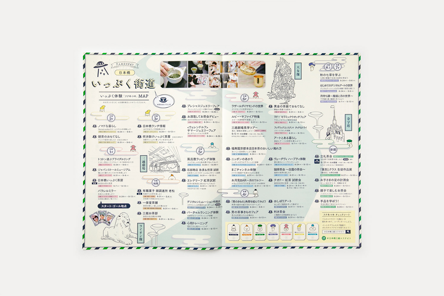 Communication design and graphic design project for an event, “Nihonbashi Ippuku Kaido*1”, which interconnects whole Nihonbashi Mitsukoshi.
