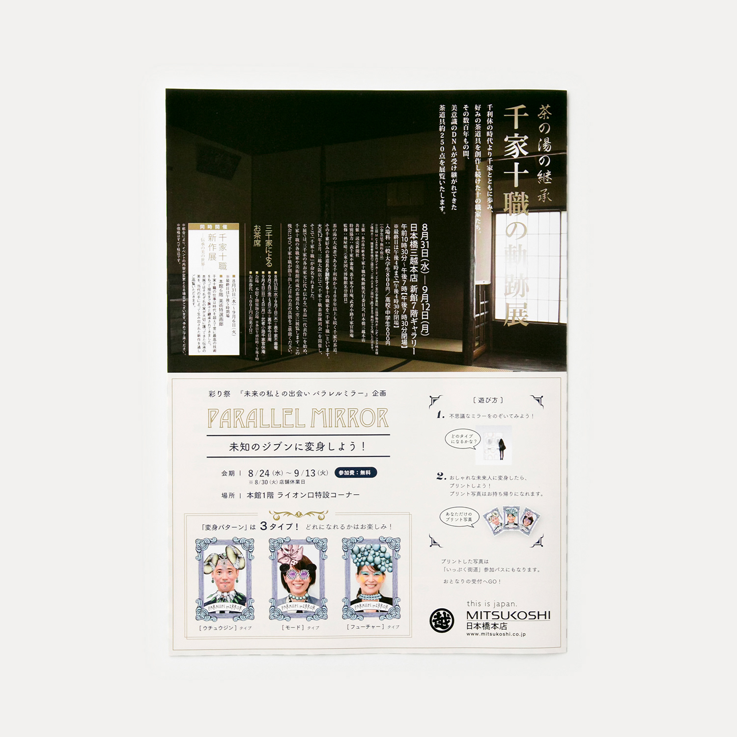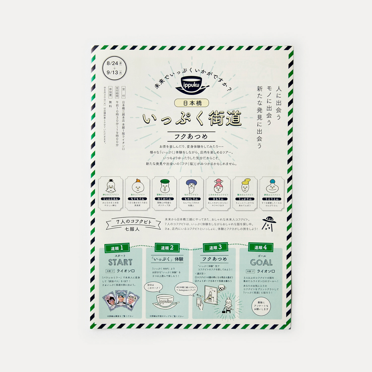 日本橋三越で開催された全館連動イベント「日本橋いっぷく街道」の企画、コミュニケーション設計およびグラフィックデザインを行った。